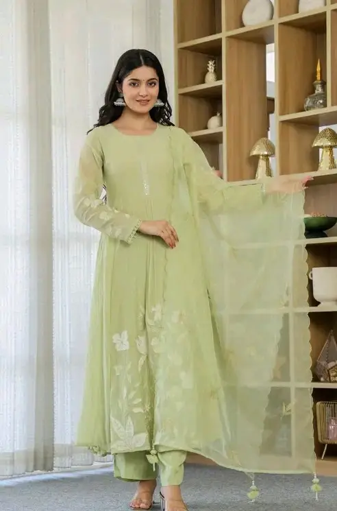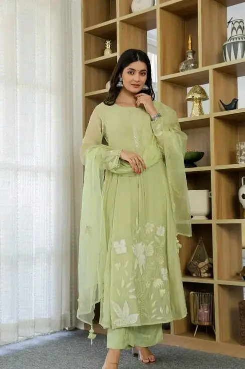 Royal green shade mein yeh elegan Kurta Pant with Dupatta embroidery ke saath ek regal aur graceful look deta hai. Flowy silhouette, matching pants aur lightweight dupatta is outfit ko festive aur special occasions ke liye perfect banate hain. Classy, comfortable aur effortlessly stylish – har celebration ke liye ek shandar choice